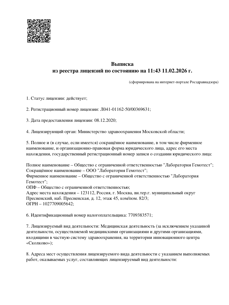 Лаборатория имеет полную аккредитацию и сертификацию. Исследования передаются с подробной и развернутой расшифровкой по соотношению показателей.